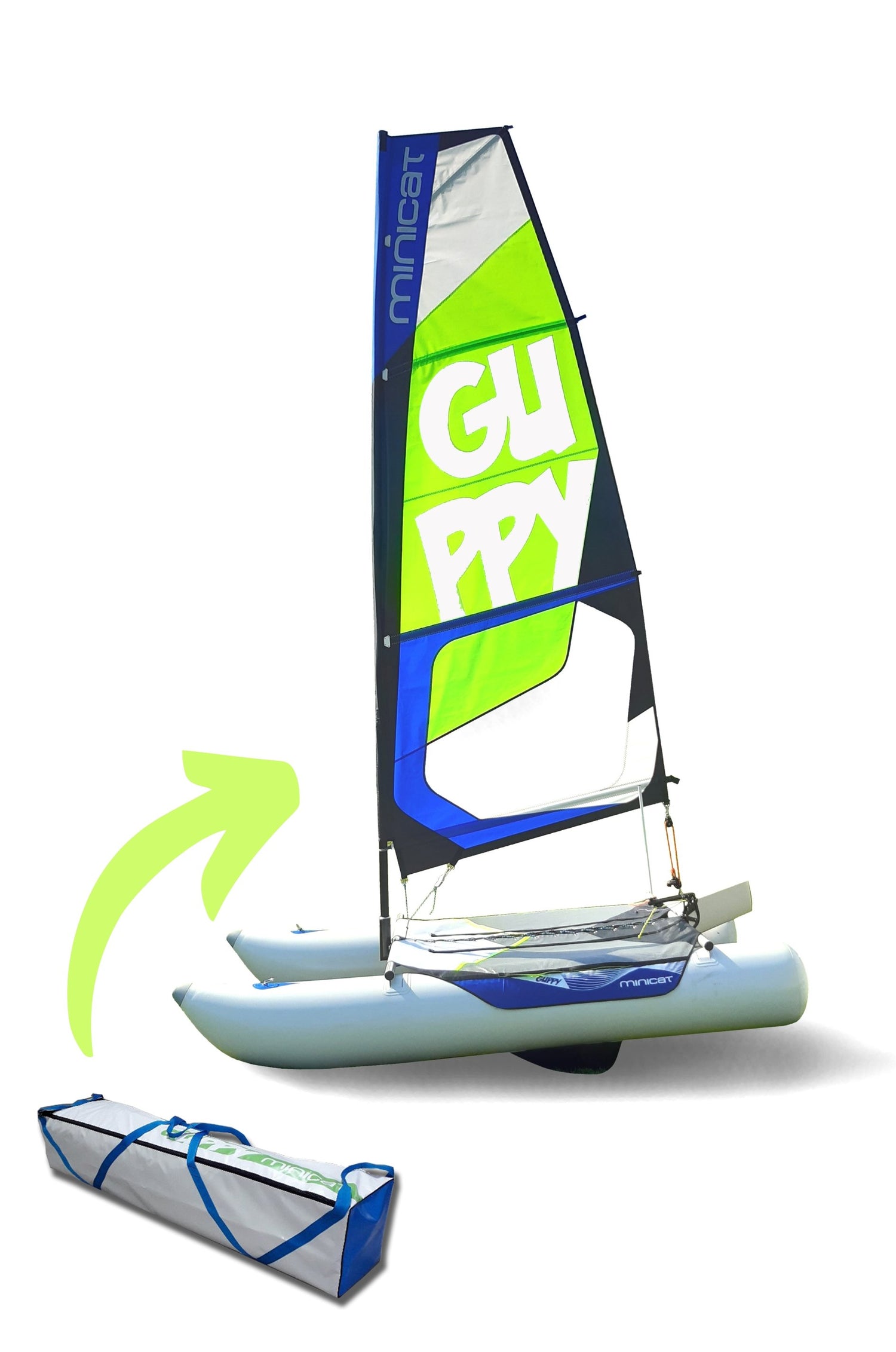 From being stored in your cupboard or garage just load it in the car and go. One bag weighing just 29 kg, assembled in 10 mins - that's GUPPY, the unique portable sailboat.